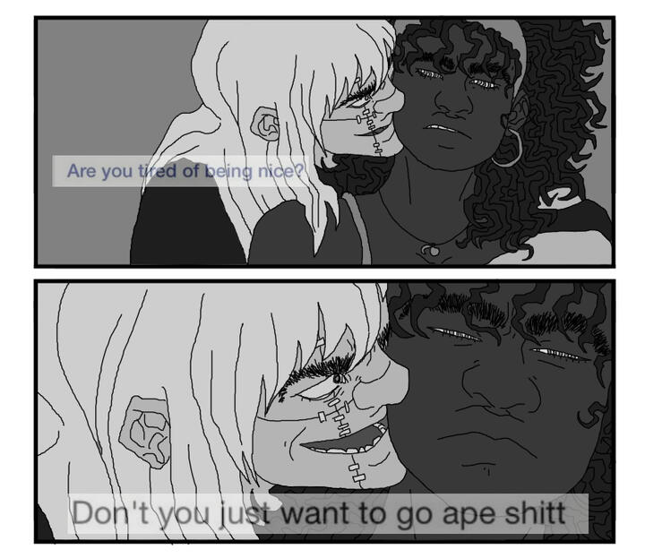 "There's never anything good on," Utahime grumbled as she fruitlessly flipped through the TV channels. Eventually giving up on her search, she cast the remote aside and turned her head to look at her girlfriend. "Do you just wanna go out for lunch or something?" She glanced at the clock on the wall before correcting herself. "Or dinner, I guess. Linner? Dunch? We're kind of in that weird in between sp- Are you listening to me?"Shoko was entranced, staring out the living room window. She was undoubtedly lost in thought. The side alley outside wasn't all that interesting save for two cats fighting for scraps of food and an old woman hanging her laundry out to dry."Everything okay?"With a blink, she was back. Shoko looked at Utahime, nibbling at the inner corners of her lips. "Yes," she said quietly. She held a stoic expression before giving up and flopping back against the couch cushions with a look of exhasperation. "Okay, no. Not really." She rose her hands to her face. "I don't think I can handle going out right now. Can we order in?"Utahime quirked a brow. "Sure ... My treat ..." She fished her phone out of her pocket, opening up a food ordering app. She stared at it for a moment before turning her gaze back to Shoko. "In exchange, you gotta tell me what's on your mind."Narrowing her eyes, Shoko argued, "I'll order the damn food then." She tried grabbing for the phone but Utahime held it out of her reach."You don't have to talk about it but I'd like it if you did," Utahime said. "I'm way better at listening to you talk than Dom." She paused, tapping her chin before adding with a smug smile, "I'm prettier too!"Shoko laughed but the joy was quick to fade. She hugged her arms to her chest, smile replaced by a deep contemplative frown. It was a difficult subject. Even during her sessions with Dominic, she always kept her recollections vague and disconnected. As if she hadn't been the one experiencing them, but someone she knew. As if she'd merely witnessed the events from another room. "I've been having a lot of nightmares lately. I keep reliving the day ..." She hesitated. It felt like speaking her name outloud would bring everything back in a way worse than the way it'd been haunting her at night. "the day I lost my leg." She internally chastized herself for her cowardice. "Jasper is a good kid. They don't deserve to get wrapped up in all this bullshit.""Were you able to get Jasper's DNA samples again after the fire?" Utahime asked.With a tired nod, Shoko replied, "Yes. I took them earlier. They over-exerted themself during a mission, so they were brought in unconscious. I just helped myself to collecting the samples before they woke up." She grimaced. "I just-" She cut herself off, shutting her eyes tight and letting out a long breath through her nose."What're these geezers even gonna do after they confirm who their parents are?" Utahime grumbled with a roll of her eyes. "Sentence the kid to death? For crimes they didn't commit?" She scoffed, reaching an arm around Shoko's shoulders and pulling her close to her side. "You guys are doing the right thing giving them a second chance at life."Leaning into the embrace, Shoko felt her worries start to melt away. She moved herself closer against Utahime, slipping her arms around her waist. She kept her eyes closed. "I agree that we're doing the right thing ... but part of me feels ... scared by it all. Like we're luring the fox to the henhouse." Fragments of that night all those years ago came back all at once. The clap of thunder, the smell of wet cement, a hand around her ankle. A sharp pain spread through her residual limb, causing one of her arms to unravel itself from around Utahime to clasp at it. Her face twisted up with pain and determination. "We can't let anything happen to the school. To the students."Utahime's hand settled over Shoko's, squeezing tight. "Look, if anything does happen, we're more than ready for it." She took hold of Shoko's chin with her other hand, making their eyes meet. She felt the other flush against her touch. "I won't let anything happen to you."Shoko leaned forward, giving Utahime a chaste kiss. Once she broke it, she pressed their foreheads together. Seemingly at random, she burst into laughter, echoing words directed at her a few days ago, "What twisted hedonism."Pulling apart to give Shoko a disgruntled look, Utahime shouted, "Eh?! What's that supposed to mean?!"With another chuckle, Shoko ran a hand through her hair, pushing her messy bangs out of her face. "The higher-ups had some shit to say about us dating at our meeting on Saturday," she mused. "They said we were a ..." She rose a finger to her chin as she recalled the exact words. She gave up. "It was that, I think. A twisted hedonist friend group." She laughed once more before falling back against Utahime, who appeared to be steaming at the ears. "They were talking about the lot of us. I suppose all of our dating histories are pretty messy and intertwined." She pulled Utahime closer to her, relishing her rage-fueled warmth, as she dramatically added, "What has the world come to? A bunch of whores and heretics are running Jujutsu Tech!"Utahime didn't laugh, entrenched in her frustration. "I'm sick of those old farts in charge! There's always a problem with them. If it's not 'cause we're gay, it's because we're women," she sneered. "Yaga is useless. Gakuganji and the Kamo and Zenin clans support it. Gojo's head is too far up his own ass to notice or care. This place sucks." She pursed her lips in thought, suddenly brightening up and bouncing excitedly in her seat as an idea came to mind. "Let's start our own school. I know my kids will follow. We might be able to get some of the teachers to go. Dom and Kento, maybe. Y'think the Tokyo kids would come?"With a pensive look, Shoko considered, "Maybe. If we get Gojo to leave with us ..." She then shook her head quickly, as if snapping herself out of a daydream. "If not, I doubt it. I don't think it'd work