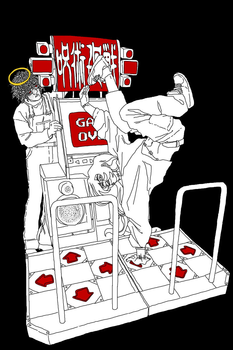 The glow of a dozen computer monitors lining the wall were the only source of light in the cramped and messy room. The security detail, or rather the bits and pieces left of them that could be made out, painted the space a vibrant red. Hakari did nothing but sit and drink his champagne patiently, waiting for his unexpected guest to make his way up to him. It was all he really could do. He'd crossed his legs, a look of mild disappointment etched on his face. What a way to kill his buzz. And things were going so well too."What do we even pay them for?" Kirara sighed beside him, laying on her back on the couch and mindlessly thumbing at a rhythm game on her phone.Hakari gave a shake of his head, an annoyed hiss of air escaping him. He had no answer for her. He had to admit he'd been greedy and this greediness had made him foolish. What else could he have expected from-"Alright! Where is he?!"The door behind the two slammed open but neither budged an inch from there they sat. The metal door had dented from the brutal impact, lock hanging off the ridge uselessly, and formed a crack in the door behind it. Hakari rolled his eyes and took another deeper drink from his glass. What a pain in the ass.Tsukuna leapt over the couch, landing on her feet and facing the gory monitors. "Oh, I see! You're admiring my handiwork?" he grinned. She pointed up at one of the screens, looking at the unimpressed couple over his shoulder. "This one's my favorite! Cute, right? Barely screamed, that one. He popped like a firework.""He's downstairs," Hakari sighed, giving a nod to a second wall of monitors to his right. "I thought his wife would be coming for him. Not you." He sat up as Tsukuna denied him a response, instead walking across the room to look at the monitors Hakari had gestured towards. "Can you tell Mrs. Capricien we'd like a word, at least? For our trouble?" He motioned around him, to the door, to the maimings.There was no immediate response from Tsukuna, eyes locked on the far more intriguing violence on-screen. Roger tearing and pummeling through his fighting opponent at the center of a ring. The crowd around him was fanatically cheering, an incomprehensible static. He wasn't even using his technique, feeding only off his rage. Blood covered his clenched fists, splattered across his face. How charming. Tsukuna couldn't keep his smile from splitting into a pleased grin. "Is he high?" she asked, tapping a screen zoomed closely into the mindless fury on the Sorcerer's face. It held the frame. He gave it an affectionate look. "Or drunk?""Both. Off his ass," Kirara replied, perking her head up. "Are you gonna fight him?" Her eyes had lit up at the prospect.Tsukuna shook her head. "Not today, no," he turned on her heel and motioned grandiously towards the couple. "You are." He strutted over to the couch, letting herself drop onto the cushion between the two. Kirara looked annoyed as the movement ruined her in-game combo. "If I fight him, he'll end up like your boys outside. Besides, if you guys want the missus to see you, this'd be a good way to get her attention. Defeating him, I mean."Hakari scoffed, "Bullshit. We beat him and you go and take all the credit. That's how that'll play out." He stood regardless, stretching his arms over his head.With a playful laugh, Tsukuna relented, "If you impress me, I'll put in a good word." He offered. "Just 'cause I like your coat."Quirking a brow, Hakari looked down at his fluffy faux fur coat. It was old and ratty, stained with dried blood and liquor. He shrugged it off, tossing it over Tsukuna on his way out the door."I'll be back."