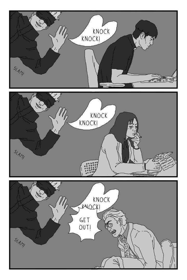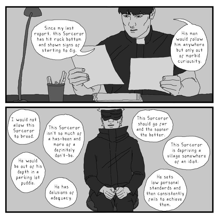 It was that time of day where one didn’t know if it was yet late enough to be called morning or early enough to still be called night. The sun was still a few hours away from peeking out over the horizon and Dominic was buried up to his neck in paperwork, reviewing the materials he would be going over in all of his classes later that day. He sat at one of two tables in the staff breakroom, having opted for this workspace instead of his office since the breakroom had both a bathroom and a coffee maker readily accessible to him. The fact that he was on his seventh cup of coffee and third bathroom trip that night lead him to believe he’d made the right decision.On the verge of a migraine as he stressed over how exactly one went about teaching and counseling high school students for nearly thirteen hours a day and six days a week, the man took a momentary reprieve from the harsh light of his laptop and the tiny text on the stacks of documents and books piled up around him and shut his eyes. Just as he felt himself start to lose consciousness (thanks to the soothing circles he rubbed into his temples), the door to the room slammed open and shot him straight back up in his chair."Knock knock!"He went about typing away at his keyboard as if he had never stopped, expression impervious, pretending he hadn’t even noticed someone entered the room.“I’ve been looking for you!” Satoru shouted, raising his index finger to point right at Dominic.Ah, there was that migraine.“I’m busy,” Dominic mumbled, practically hiding behind his laptop. What was Satoru even doing up at this time?Satoru noisily dragged a chair over to the table Dominic occupied, turning it so the back of it was facing away from him and then straddling it. “C’mon! Hear me out! It’s about the new kid,” he insisted, drumming his hands in a nonsensical rhythm on the back of the chair in an attempt to garner Dominic’s attention.“Can’t this wait?” Dominic glanced at the time before glaring at Satoru. “It’s four in the morning.”“So? It’s not like you’re sleeping,” Satoru pursed his lips. His brows quirked beneath his blindfold.Dominic stared at Satoru, too exhausted to bicker on. He relented, “What is it?”Satoru folded his arms overtop of his chair, propping his chin onto his stacked forearms. “Jasper’s not really taking to training,” he said. “I don’t really wanna push them to fight but this is a problem considering their circumstance. They can’t even defend themself. If they can’t exorcise …” There was a pause and Satoru leaned back a bit in his chair, holding onto the backrest and drumming his fingers against the metal. He was always so fidgety, as if the world wasn't moving as fast as he wanted it to. Not finishing his previous sentence, he moved on to the next, “The folks in charge aren’t gonna wanna just let them walk. Hell, I wouldn’t want to let them go off on their own anyway. They’re unstable and dangerous. Not to mention that they’d have nowhere to go.” He was talking himself in circles and feeling the metaphorical walls close in on him. The conversation with Shoko a couple of days ago was weighing on his mind. It was like a fucked up game of Snake where a wrong turn would end with him biting himself in the ass.“It’s unsurprising that the child refuses to partake in your violent buffoonery, given that they show signs of trauma,” Dominic muttered, staring blankly when Satoru turned his head to face him directly. “Not all who are hurting lash out at everything around them, some recede into their shells, to safety, finding other ways of achieving their closure. At times even satisfied with existing within their own fragmented perception, never seeking remedy.” Eh, this was getting personal. He anxiously grabbed his coffee mug and finished the now-cold beverage just to have something to do other than talk.Satoru waved towards Dominic dismissively, now adding, “Yeah, yeah. I know, Mister Redemption and … what was it? Atonement?”“Repentance and absolution,” Dominic corrected under his breath.“Yeah, ok. Anyway, I was wondering if maybe you could take the four under your wing just for a mission … or two. At least until Jasper maybe finds their place here. I think they might like your approach to exorcisms. And hey, maybe the other three can learn a different way to handle Curses.” Satoru didn’t sound all too convinced on the last half but he wanted Jasper to make friends, figuring they’d help keep them grounded during this shaky stage of their life. If they all went together, it could help bring them all closer … or drive them apart because of their extreme differences. God damn it, he was doing it again. Stop thinking, just talk.No, but this was good for other reasons too. Maybe Dominic would pick up on what Shoko and himself had picked up on. Or maybe he won’t. He didn’t say anything after his first session with Jasper, so that was comforting. Maybe this was all in their heads; just paranoid thoughts clouding the judgement of a couple of stupid overworked losers who never really got a chance to grow up. But Dominic was smart, right? Dominic would know. He would tell them. Maybe Jasper didn’t actually look anything like her. Maybe it’d just been a really long time since they’d last seen her. Maybe it was all just one big fat fucking pile of coincidences. Maybe. Just maybe. FUCK! Stop thinking, just talk! Just-“Have you lost your mind?” Dominic argued, raising his hands towards the stacks of paperwork he was sorting through. “You can’t possibly expect me to take on your job as well as mine!”“It’s fine! I’ll help! We can share your current workload. I’ll take up some more of your boring and nerdy shit and you’ll take up some more of my cool and fun shit. Besides, being out and about instead locked up inside might help you destress … You seem a little wound up.”Something about the way Satoru spok